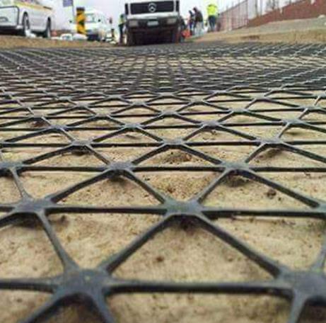 當(dāng)骨料由于施加的載荷向下移動并散開時,在骨料,土工格柵界面處產(chǎn)生拉伸橫向應(yīng)變。將骨料聯(lián)鎖到土工格柵孔中可提供橫向限制并防止骨料散布。通過集料與土工格柵的剪切相互作用,集料受到橫向約束,拉力從集料傳遞到土工格柵。土工格柵的剛度(土工格柵在非常低的伸長率下的抗拉強度)在提供更高的橫向約束方面起著重要作用。由于土工格柵加固導(dǎo)致骨料層的橫向限制導(dǎo)致更高的層剛度和更高的載荷分布角,從而導(dǎo)致施加載荷正下方的路基上的法向應(yīng)力降低。